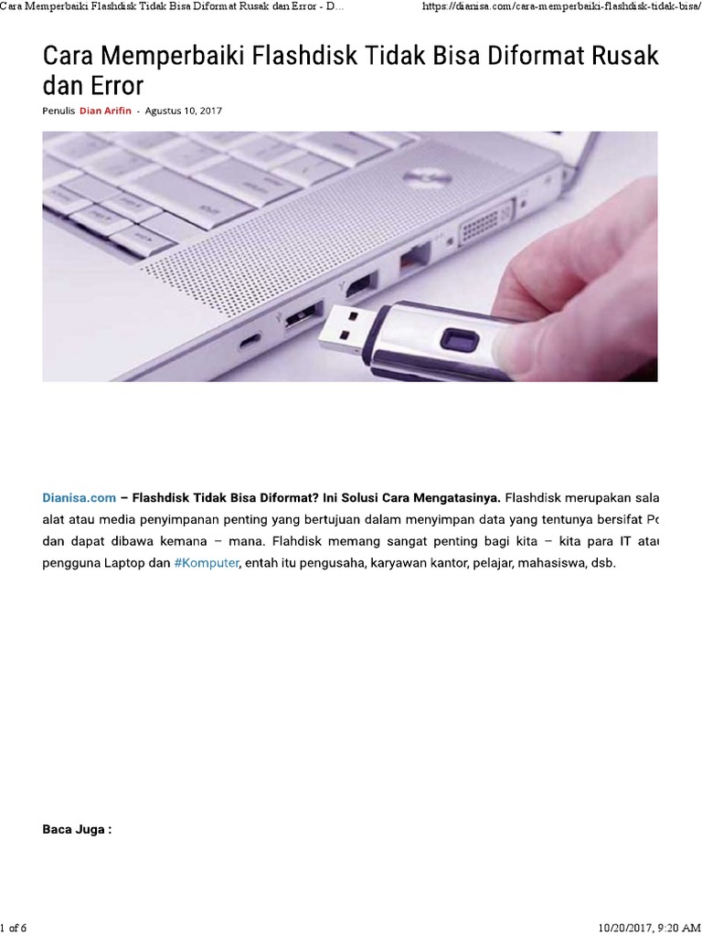 Yuk baca tutorial cara memperbaiki flashdisk rusak di candutekno. Meskipun flashdisk yang kita miliki sudah rusak dan tidak bisa terbaca lagi, namun ada beberapa cara untuk memperbaikinya. Oleh karena itu, sebaiknya anda tidak namun, dari beberapa kasus flashdisk 0 byte yang kami temukan, tool tersebut kurang membantu. Oh iya, cara ini hanya bisa dilakukan untuk. Flashdisk minta format dan tidak terbaca, error yang mirip namun tidak serupa.